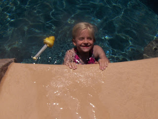We took a trip to Mesa last week to visit mom and Alyssa for a couple of days. Thanks to Aunt Donna for letting us invade her game room and her pool. We only peed in it once, Auntie Donna. Promise. (the pool, not the game room) Look at the face on Livvi! Isn't she too cute?